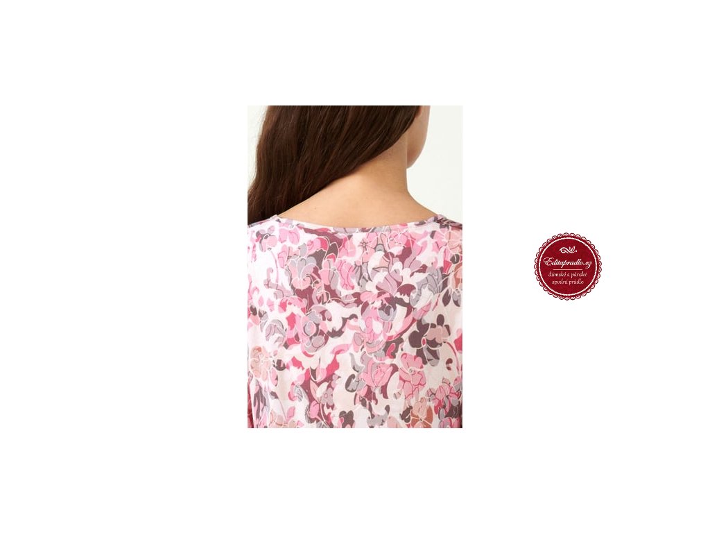 Dámská noční kvítková košile s krátkými rukávy a kulatým výstřihem a malým knoflíkem, je vyrobena z vysoce kvalitního materiálu, který poskytuje vysoké pohodlí, příjemný pocit na dotek, prodyšnost, pružnost a odolnost.