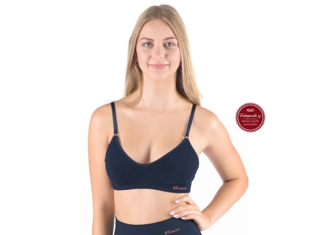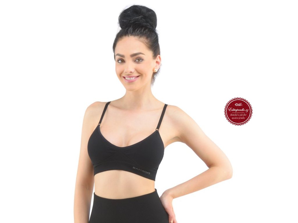 Dámská sportovní podprsenka s vycpávkami, bez kostice, bezešvé, jednobarevné značky GINA, kód 07021. Podprsenka bez kostic s vyjímatelnými vycpávkami a nastavitelnými ramínky, dámské bezešvé sportovní prádlo. Dolní kraj je zesílený a zapravený bezešvým způsobem. Horní kraj je zapravený lemovkou. Přední díl je dvojitý a mezi vnější a vnitřní část jsou vloženy lisované košíčky. Zadní díl je v celku. Ramínka jsou nastavitelná a díky použitým háčkům lze změnit jejich umístění na zadním díle. Podprsenka je jednobarevná. V záložce je vypletené logo. Materiál je vyroben z bambusového vlákna, které je doplněno elastanem. Úplet je velmi jemný a příjemný na nošení. Do každodenního prádla přináší luxusní hedvábný vzhled. Luxusní kolekce bezešvého prádla ECO Bamboo má nejvyšší podíl bambusového vlákna. V této kolekci jsme se zaměřili na ekologické zpracování jak samotného vlákna, tak postupů při barvení a konečné úpravě textilie. Prádlo je baleno v ekologických sáčcích a doplněno krabičkou bez laminace.