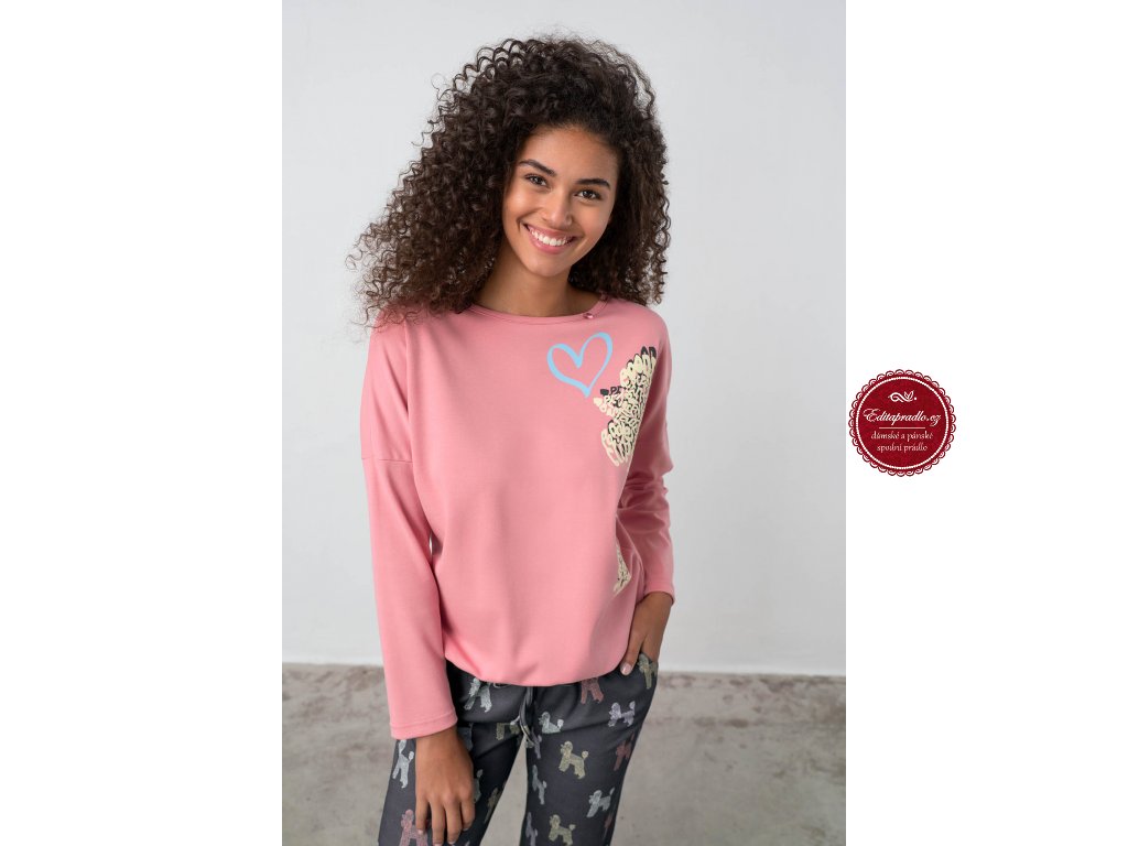 Barva a vzor: RŮŽOVÁ, potisk s motivem pejsků pudlíků na horním dílu pyžama a po celé délce kalhot