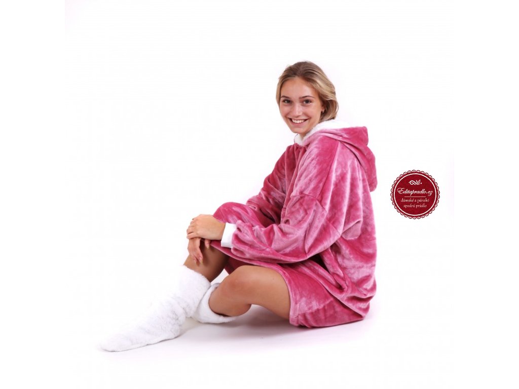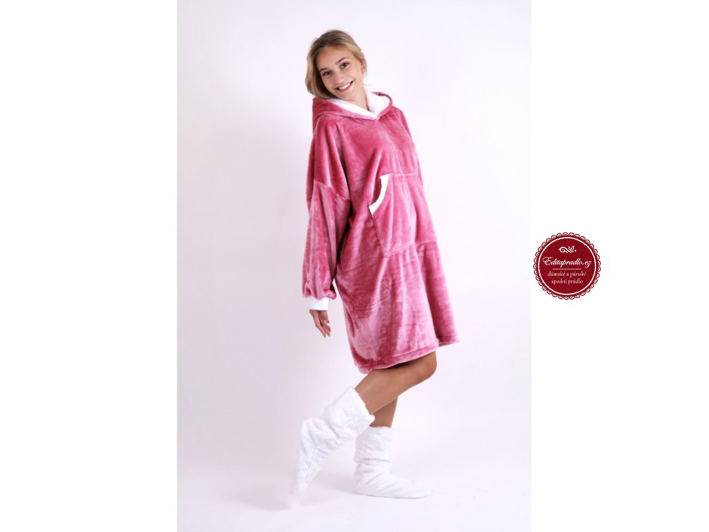 Hřejivá velká mikina na lenošení, světle růžová a petrolejová