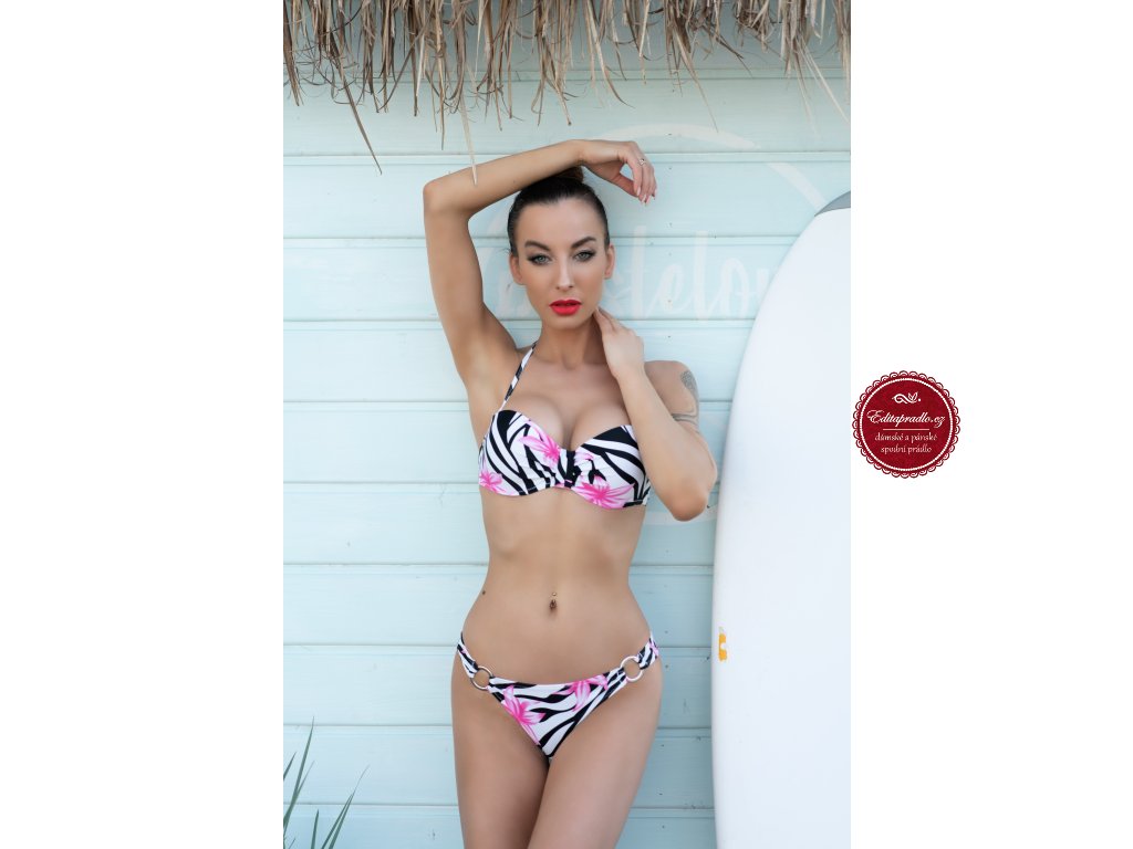 Luxusní dvoudílné dámské plavky s krásným vzorem - plavky se skládají z push-up podprsenky a nižších kalhotek, které mají vpředu na bocích ozdobná stříbrná kolečka.