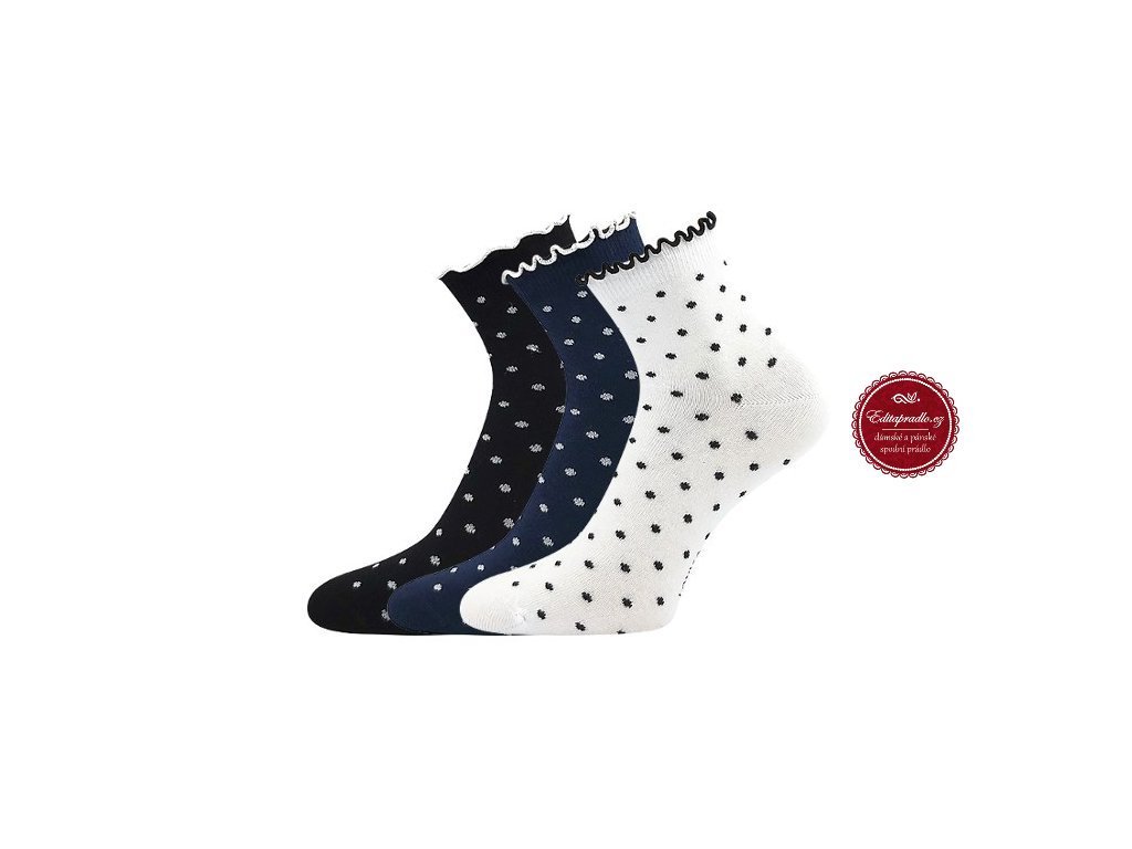 Lonka ponožky dámské SOPHIA s ozdobným lemem MIX s puntíky (3 páry)