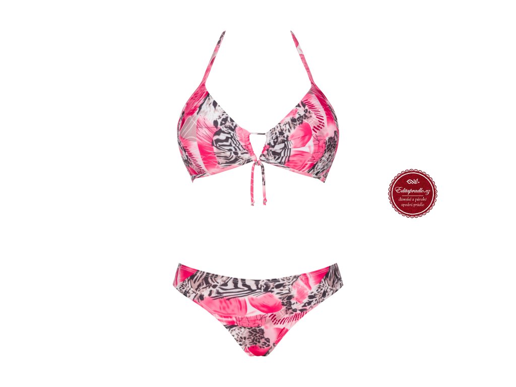 Veselé dvoudílné dámské plavky s krásným vzorem - plavky se skládají z nevyztužené podprsenky a nízkých, užších kalhotek.