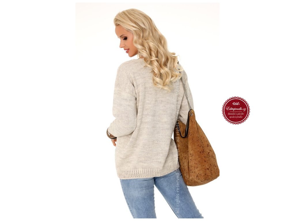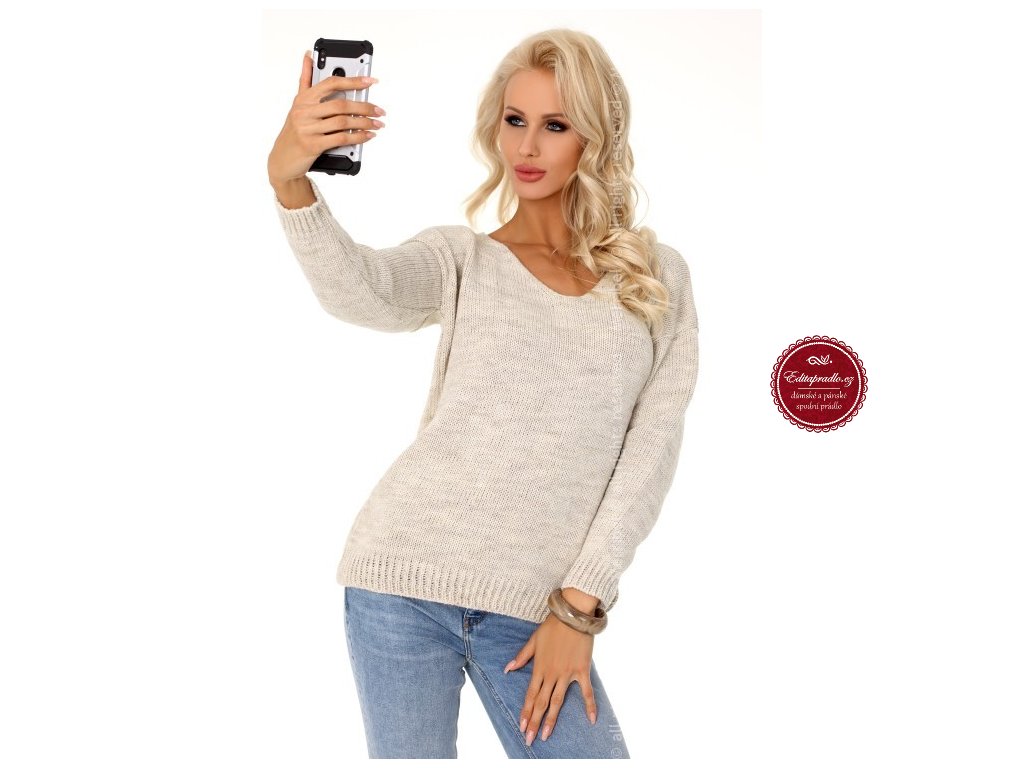 Volný klasický svetr s hladkým prošíváním a hlubokým výstřihem ve tvaru V. Na těle vypadá skvěle.
